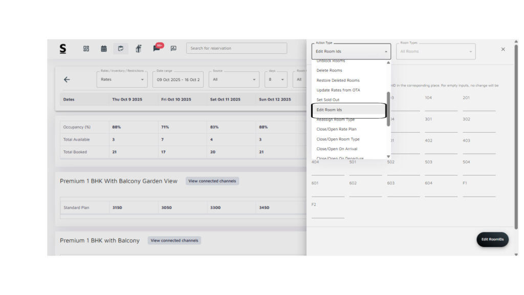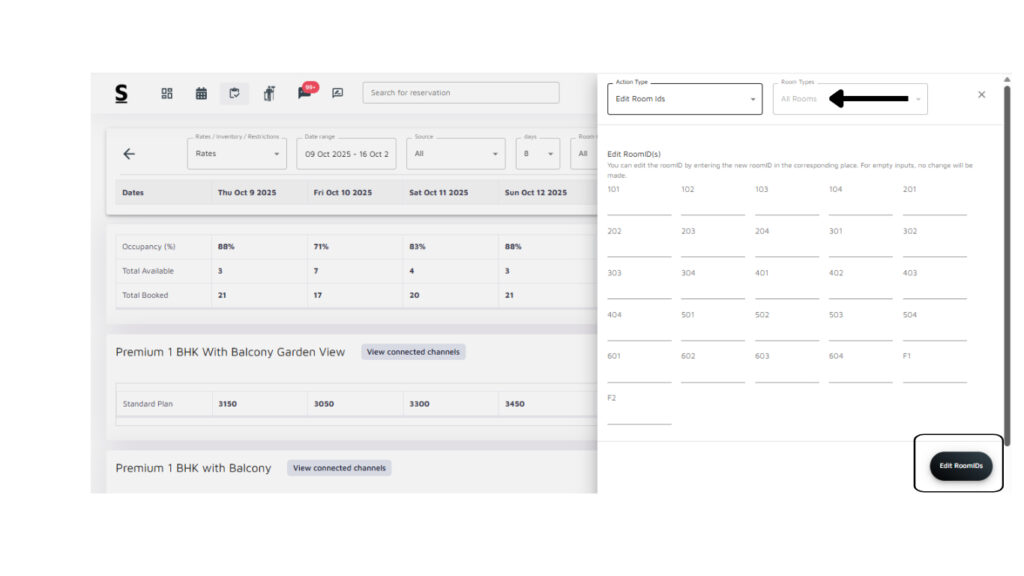 - Edit Room IDs: Below the room type selection, you will see the current room IDs. Enter your desired new room IDs in the corresponding fields.