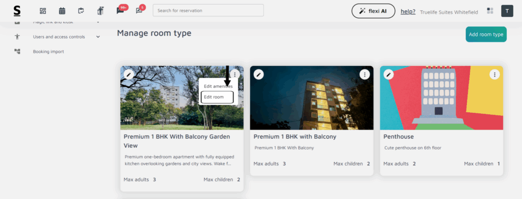 - On the Property Details page, find the Manage Room Types section, where all room types are listed.