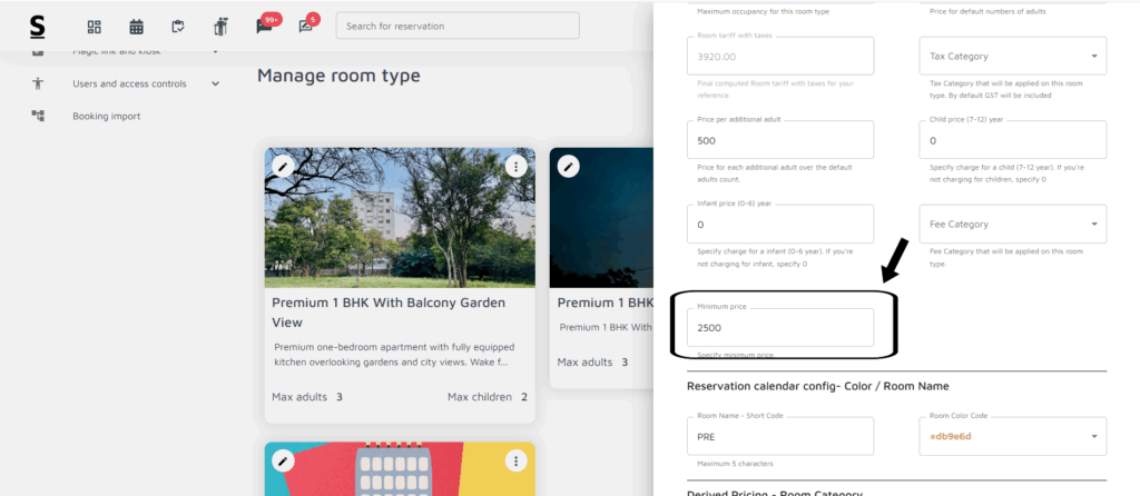 - After setting up the minimum room price, click on the Save button to save the minimum room price.
