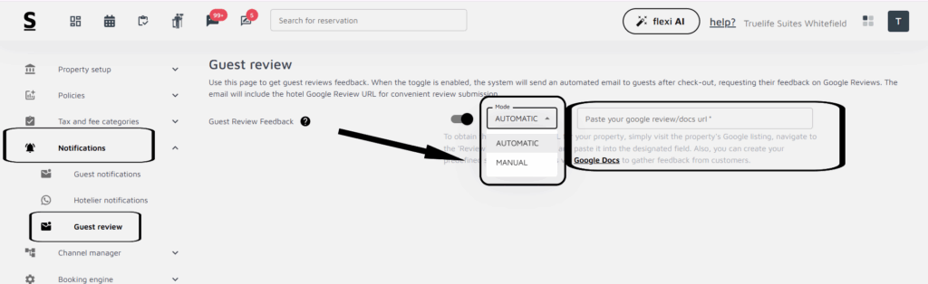 - In the input field labeled “Paste your Google review/docs URL”, paste the URL for your property’s Google Review page.