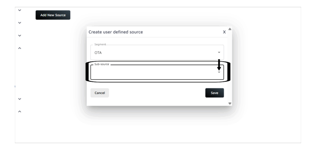 - Sub-source: Select or type the name of the specific source within the chosen segment. This could be the name of a referral agency, a corporate client, or another unique channel.