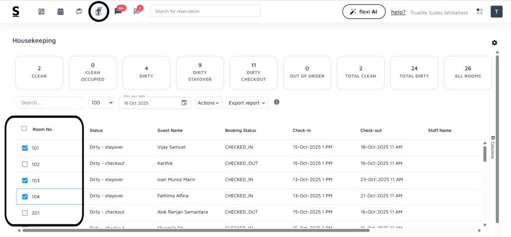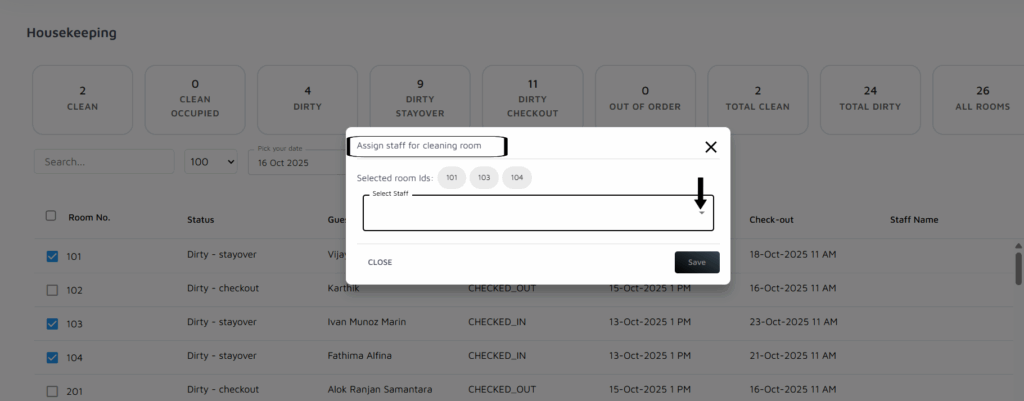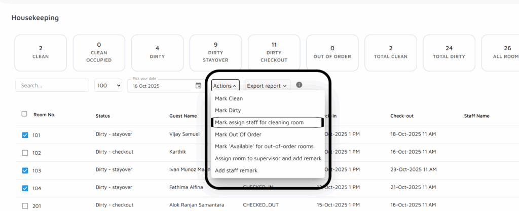 View the List of Guests: Below the tile, you will see a list of guests who are scheduled to depart. These are the pending departures.