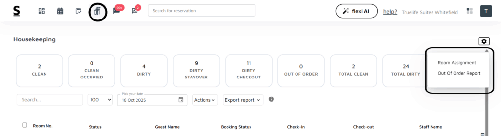 Reservation Overview: This section presents several tiles, each representing a key metric for the day. These tiles allow property managers to gauge the day’s activities quickly. The tiles include: