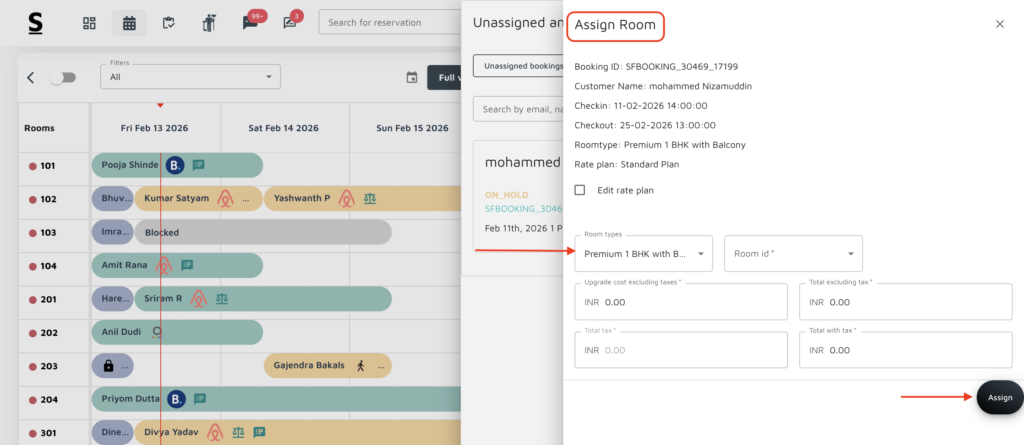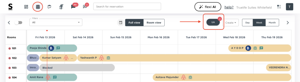 Open the Reservation Calendar: Navigate to the Stayflexi dashboard and open the reservation calendar where you can see the current bookings.