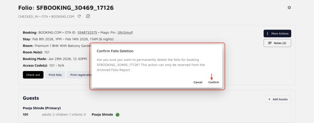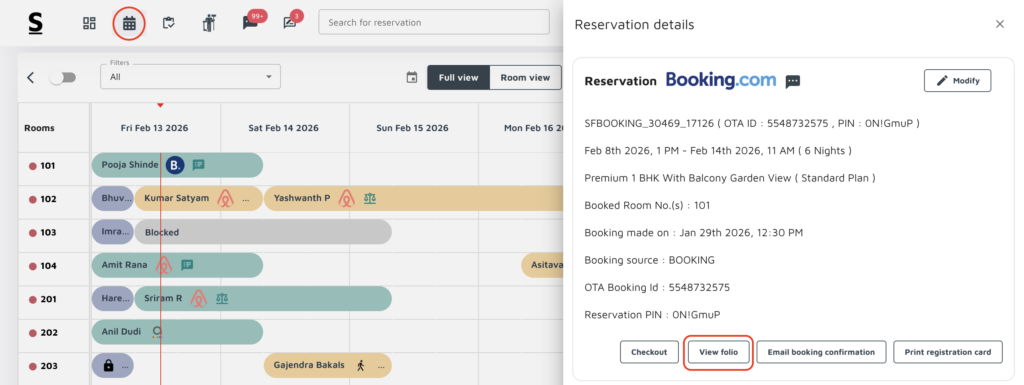Booking Folio: Under this section, you can find the folio for each new reservation.