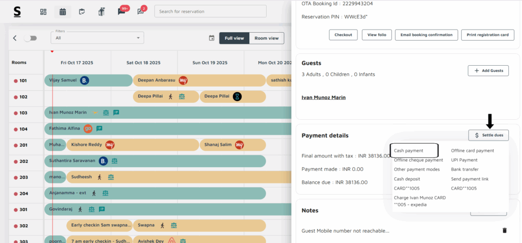 Booking Details: For each entry, you can click to view more details about the guest and their reservation.