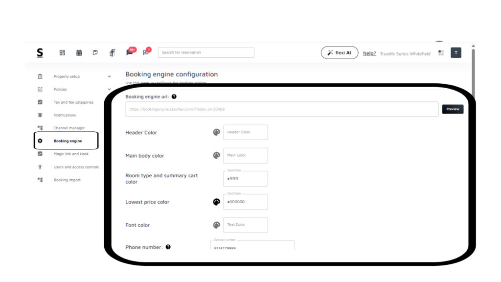 • Enter the contact number that guests can use for inquiries. This should be a direct line to the hotel’s reservations or customer support team.