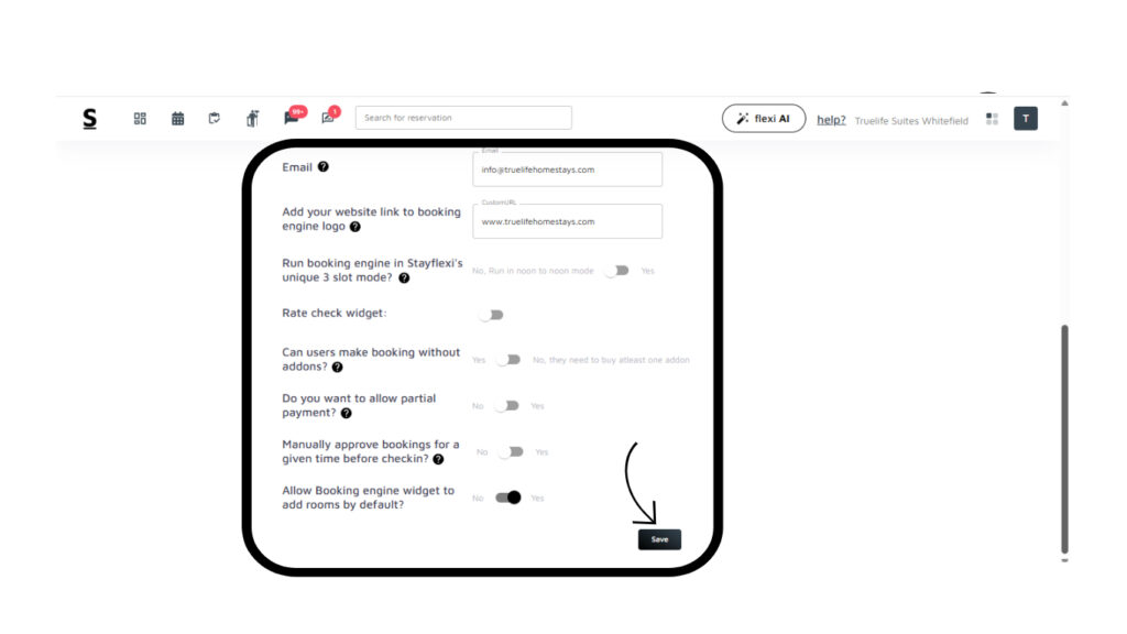 • Click “Save” after configuring the settings to apply the changes to your booking engine.