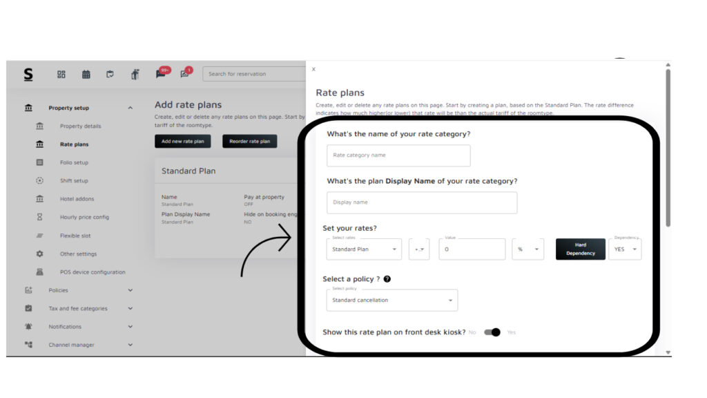 - Go to the “Rate plans” section on the left menu.