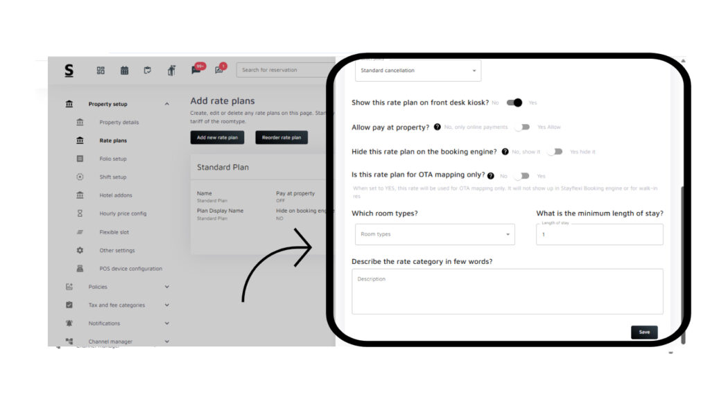 - Once all details and settings have been configured, click “Save” at the bottom of the form to create the rate plan.