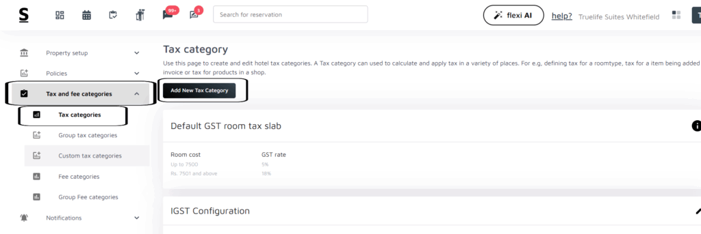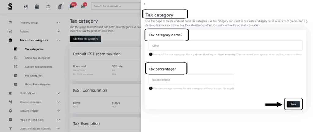 Tax categories: A Tax category can be used to calculate and apply tax in a variety of places. For example, defining tax for a room type, tax for an item being added to an invoice or tax for products in a shop.