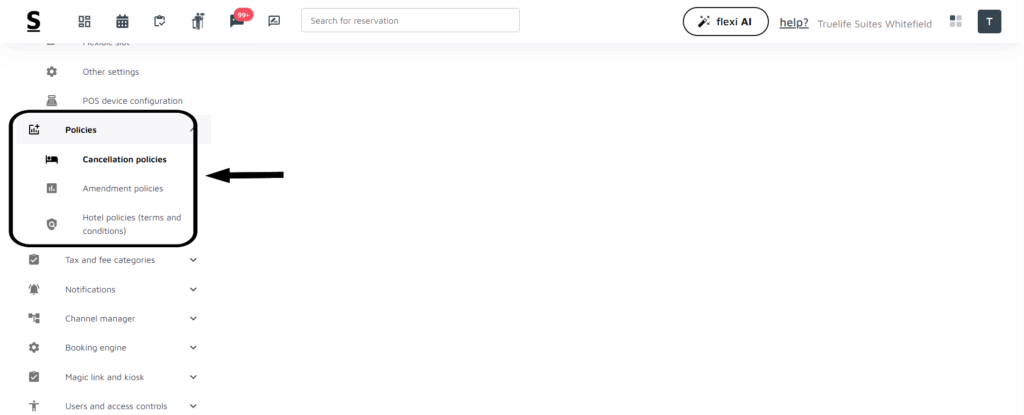 Under the Policies category, you can configure all rules related to cancellations, modifications, and overall hotel guidelines. This includes: