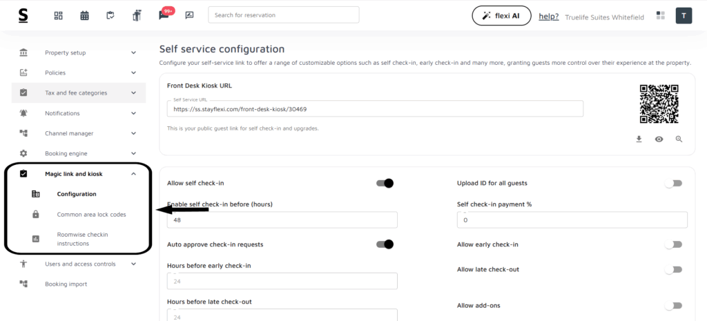 This section allows you to configure your contactless check-in experience and streamline guest arrival processes.