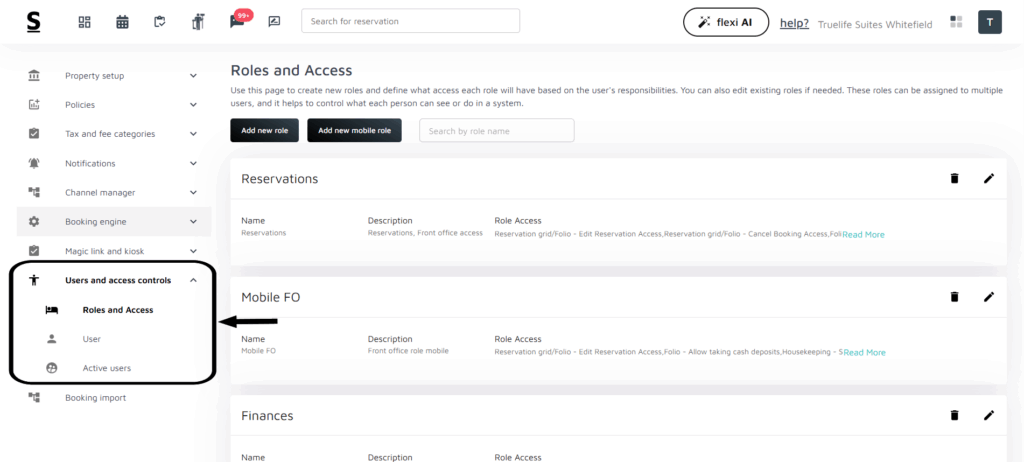Create and configure different user roles (e.g., Front Desk, Housekeeping, Manager).