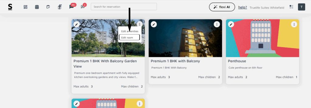 - On room type, click the three-dot menu on the room type to display the following options: