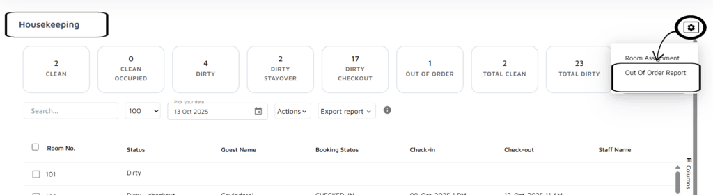 Below is the Step-by-step guide to identifying and accessing information about all out-of-order rooms in Stayflexi Housekeeping: