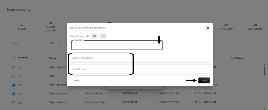 - This will ensure that the assigned staff members receive the rooms and the remarks you added.
