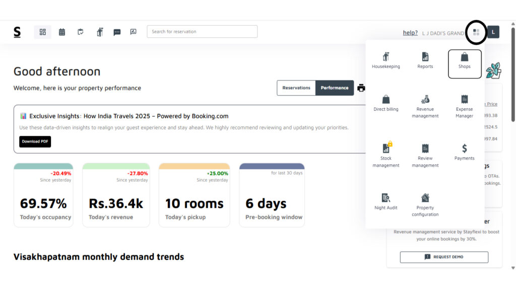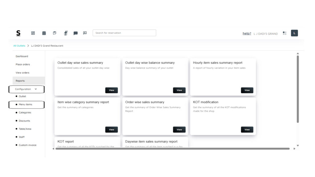 - Once you select a shop or outlet, you will be taken to its Dashboard.