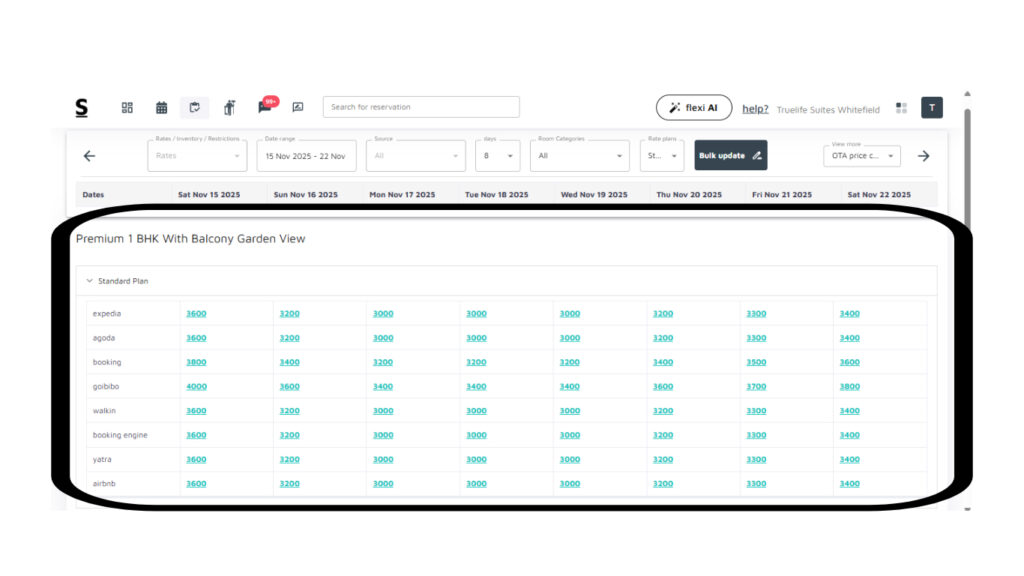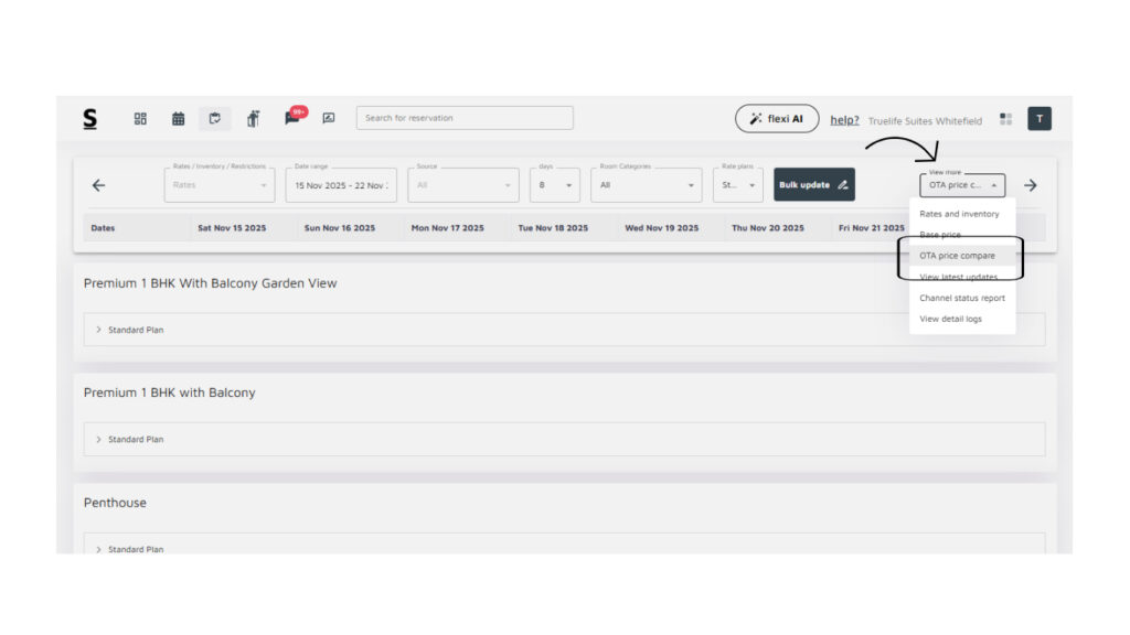 Where can I view my OTA channels report and compare prices across all connected OTAs?