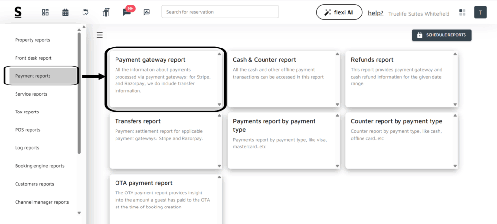- Click on Payment Reports: Go to the Reports section and select Payment Reports.