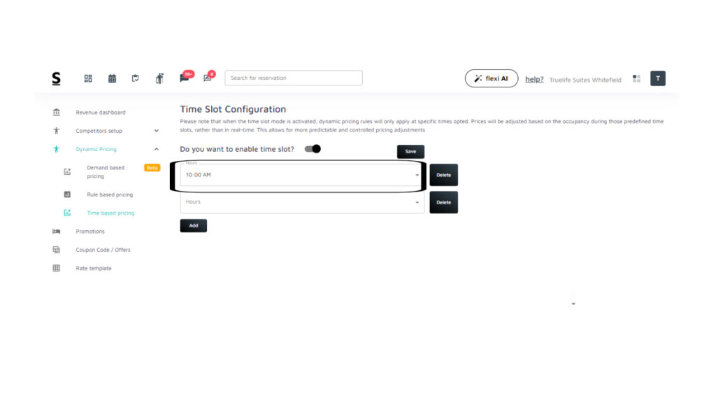 Here’s a simpler guide to setting dynamic pricing at specific times using Time Slot Configuration in Stayflexi:
