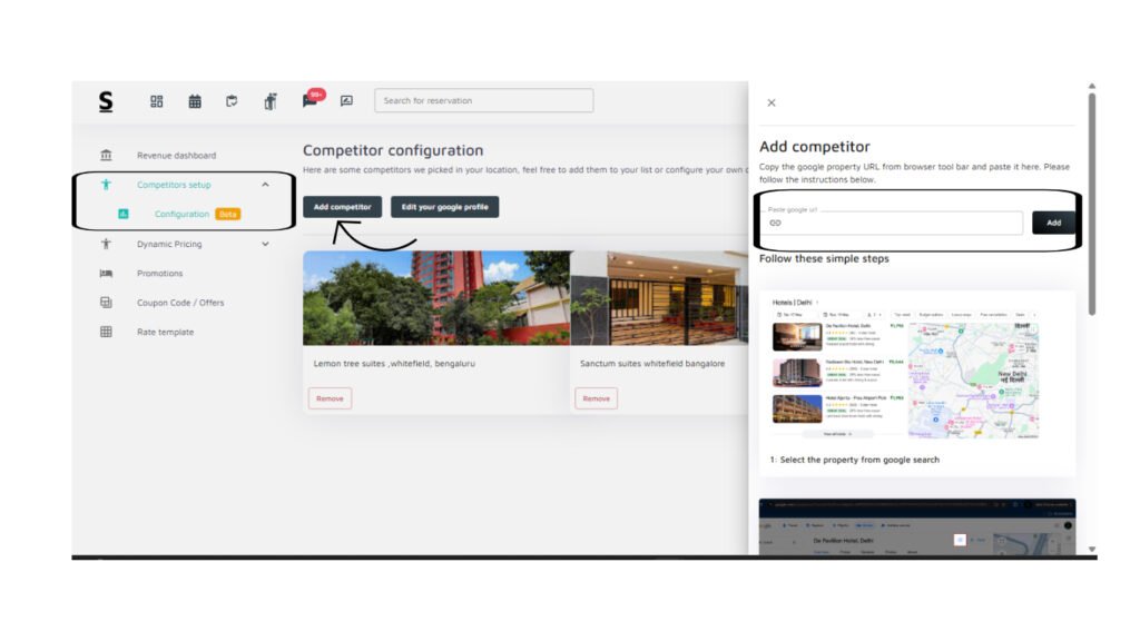 - Copy the competitor’s Google hotel profile link and paste it here.