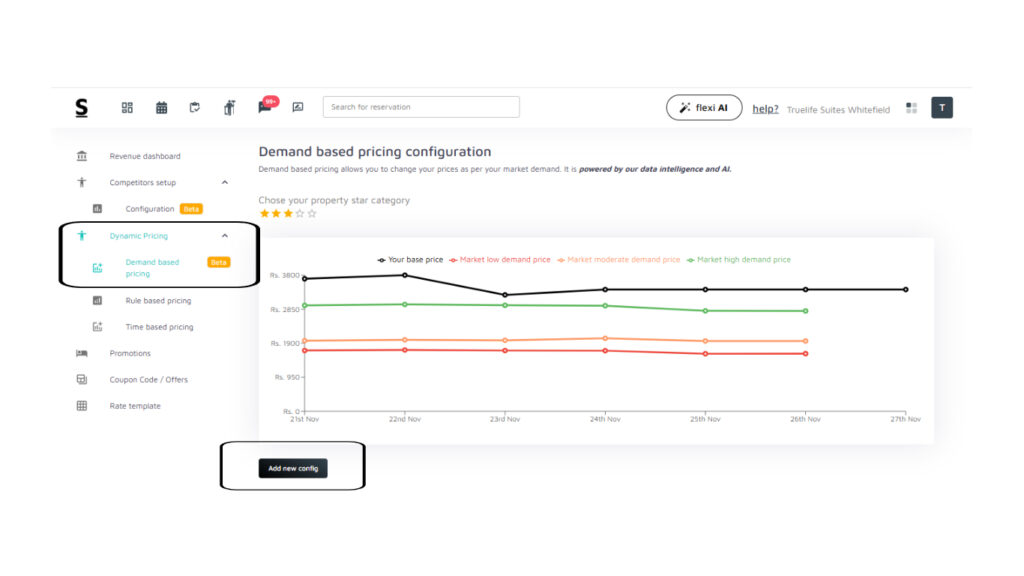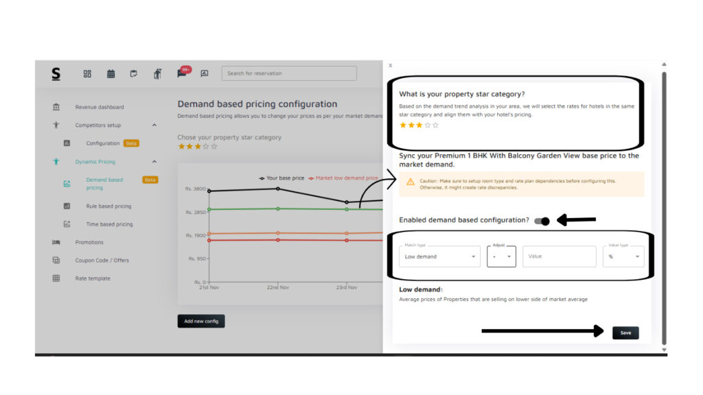 Important Note: Before configuring demand-based pricing, make sure your room types and rate plans are properly set up. If they are not linked correctly, it may lead to rate mismatches. For example, the system may remind you to sync the base price of your Premium 1BHK with Balcony Garden View with the market demand before continuing.