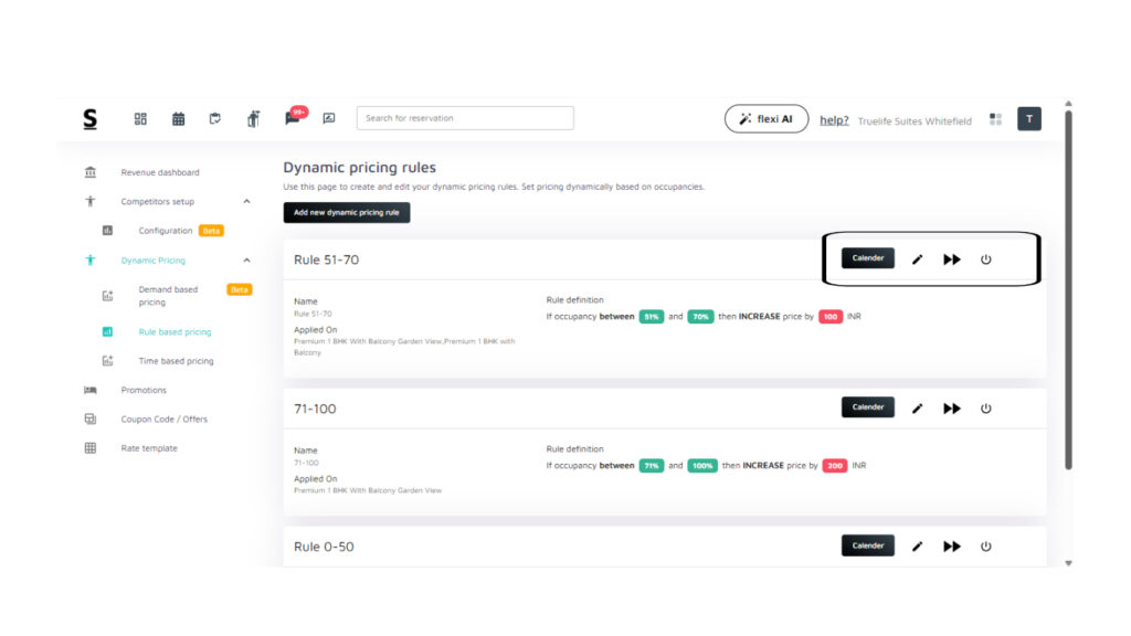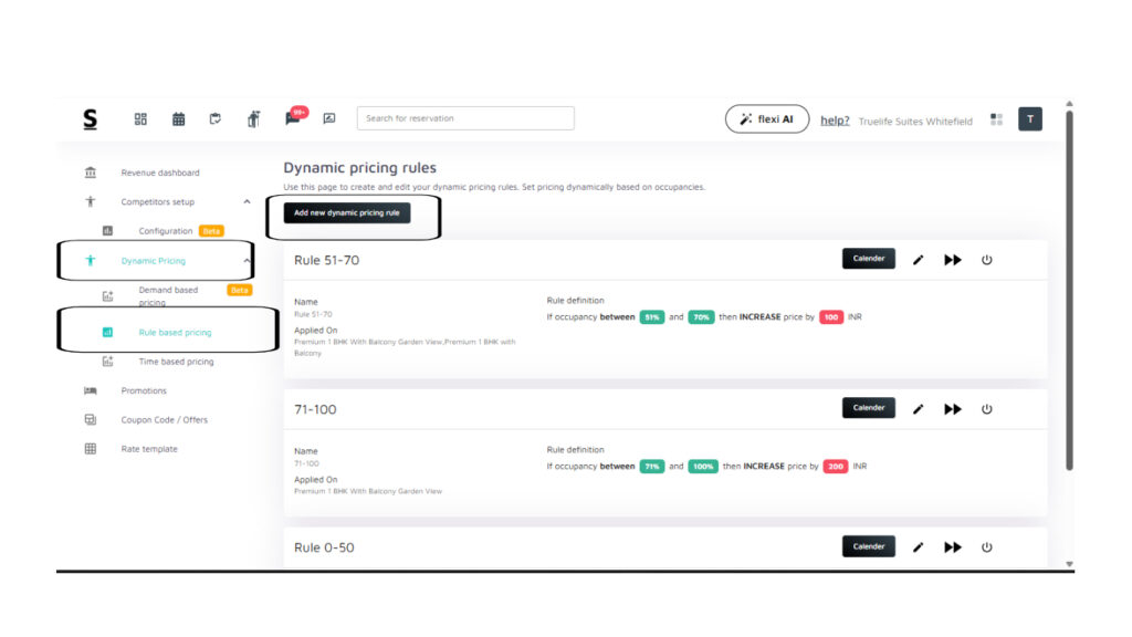 Rule-Based Pricing lets you create your own custom pricing rules based on occupancy levels. You can increase or decrease the price depending on how full the hotel is and apply these rules to specific room categories.