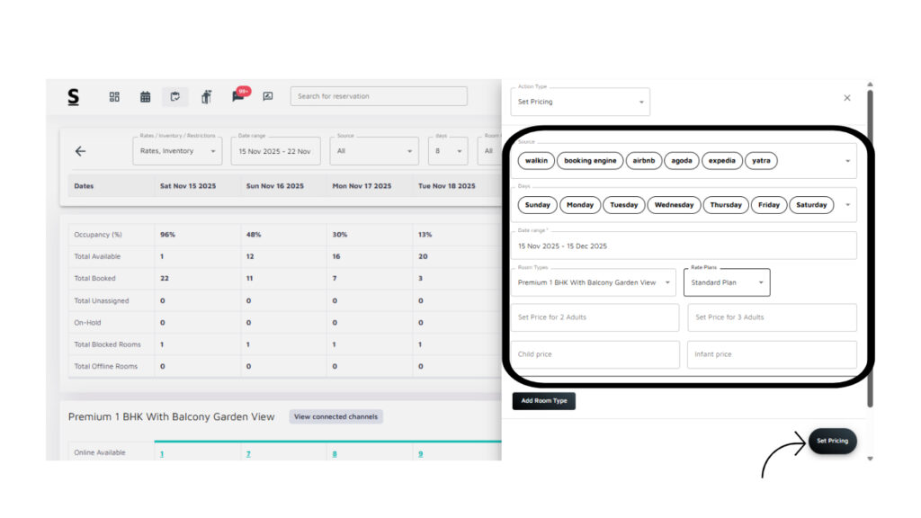 Dynamic pricing rules in Stayflexi help you change room prices automatically based on things like demand, special promotions, or seasonal changes. When these rules are active, they change the prices for all relevant bookings automatically.